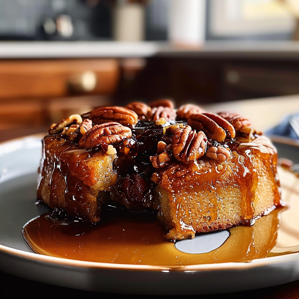 The combination of caramelized pecans and moist cake creates a delightful flavor experience.